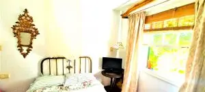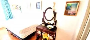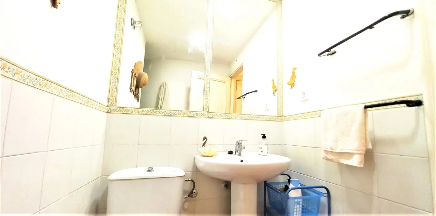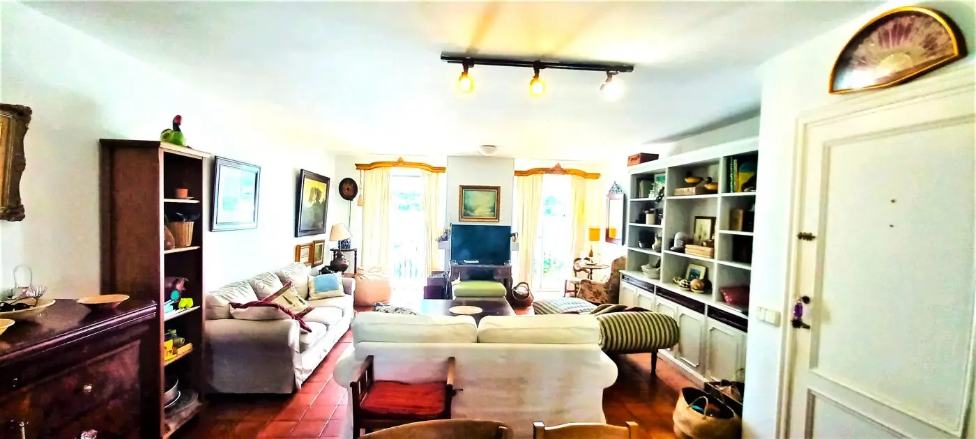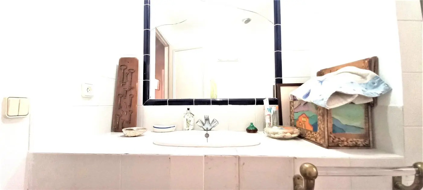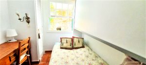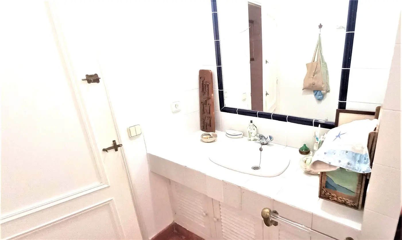 Der Zugang zum Doppelhaus erfolgt entweder über die Haupttür oder durch die Garage. Im ersten Stock erwartet Sie ein sehr großzügiges und lichtdurchflutetes Wohn-Esszimmer, das mit großen Fenstern ausgestattet ist und einen herrlichen Ausblick auf den Hafen von Mahón bietet. Zudem gibt es eine unabhängige, ausgestattete Küche mit Zugang zu einem kleinen Innenhof, ein vollwertiges Badezimmer, ein Schlafzimmer mit Doppelbett und eigenem Bad sowie ein Einzelzimmer.