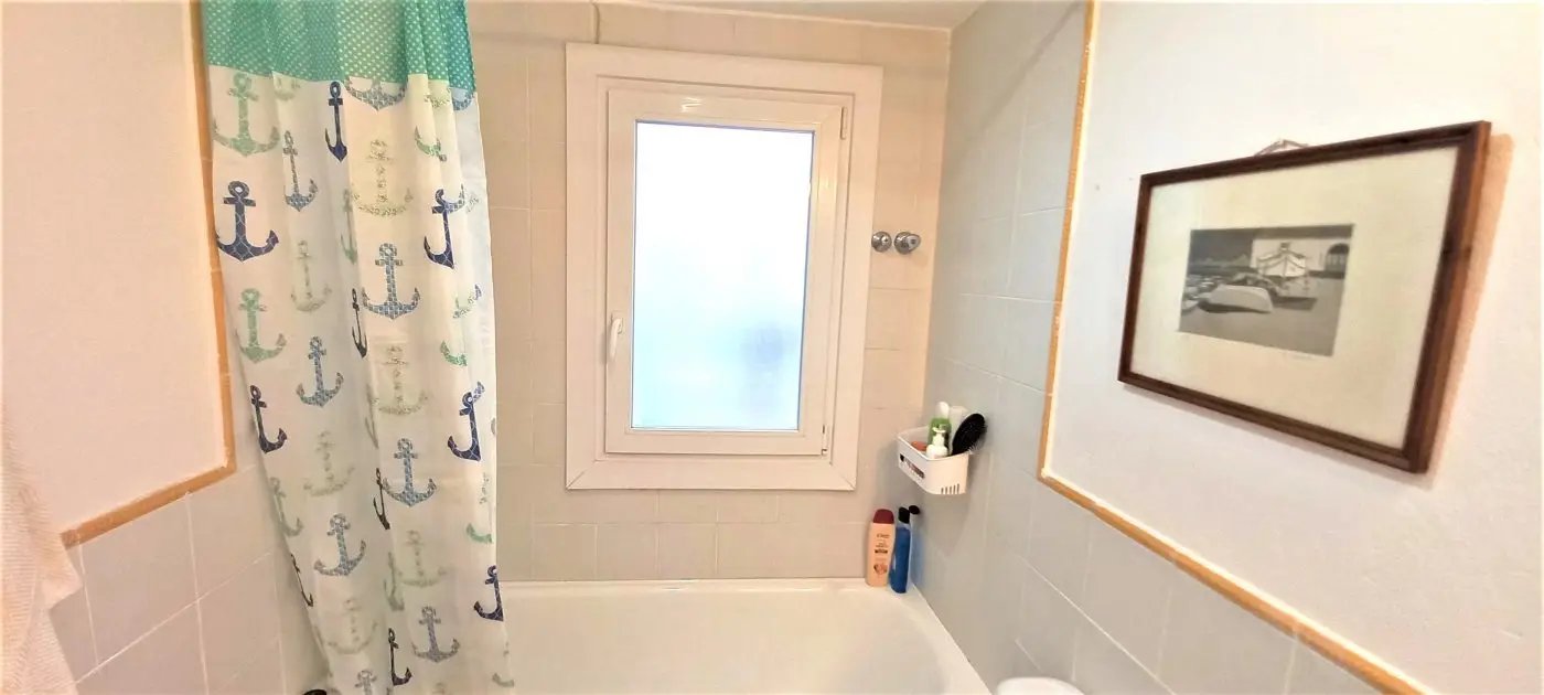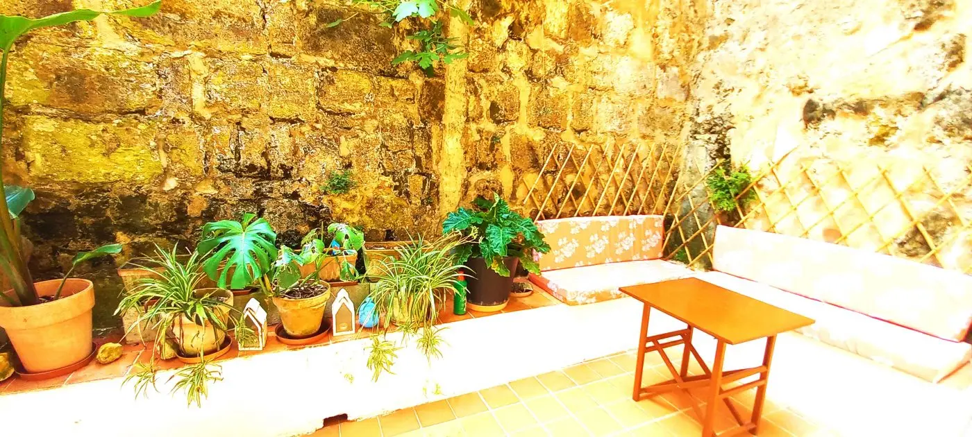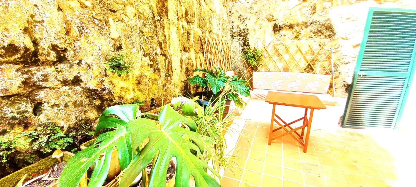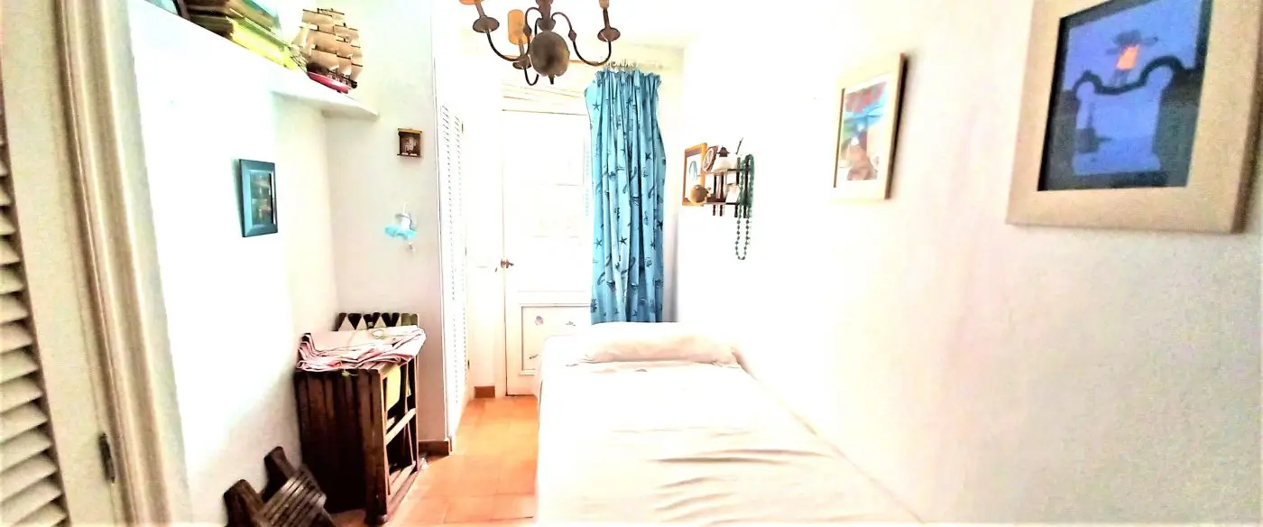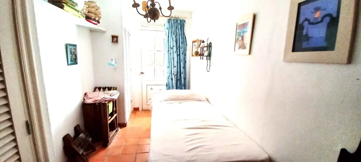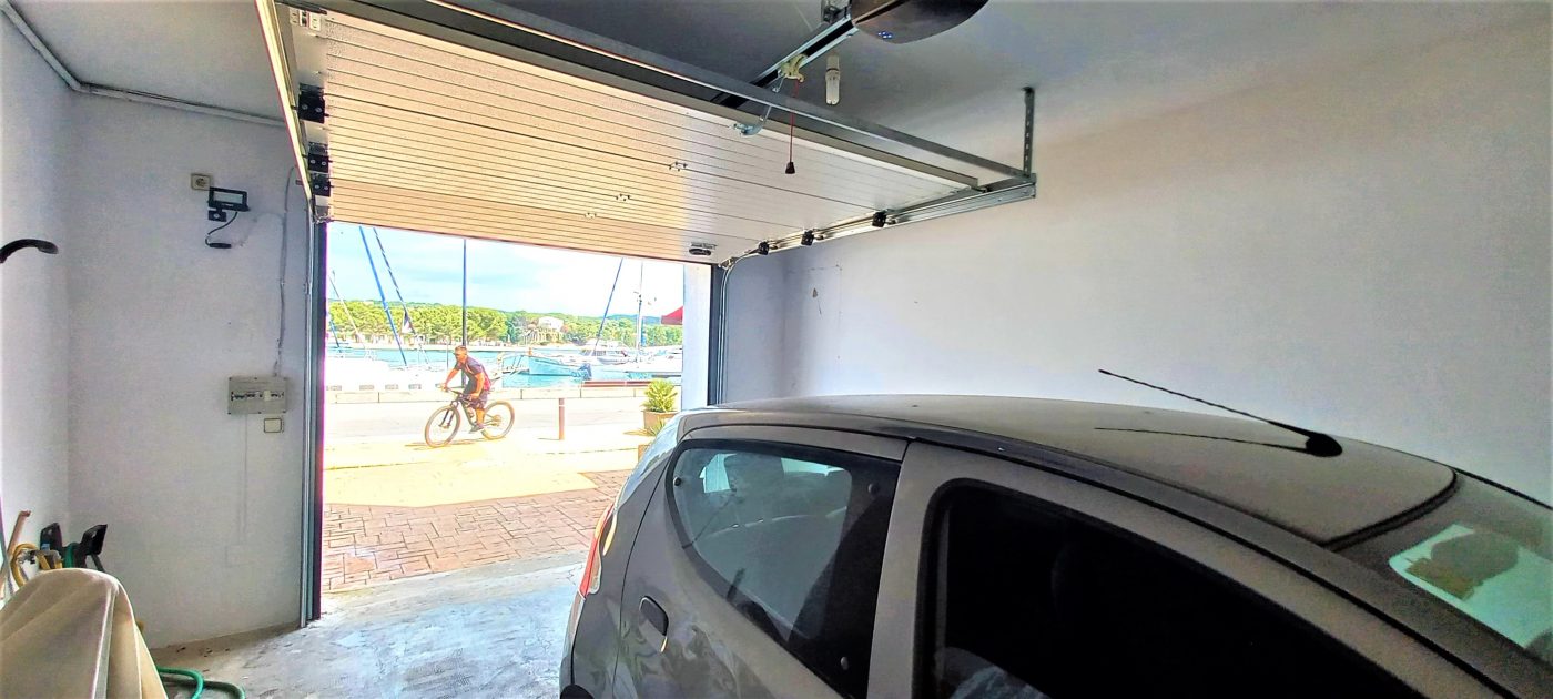 Eine Wendeltreppe führt zur unteren Etage, wo sich zwei Schlafzimmer befinden: ein Doppelzimmer und ein Einzelzimmer, beide mit eigenem Badezimmer. Der Innenhof ist angenehm kühl und eignet sich hervorragend für laue Sommerabende. Die gesamte Rückwand besteht aus Stein, was ihm eine besonders ansprechende Optik verleiht. Zusätzlich steht eine große Garage zur Verfügung, die Sie sich mit den beiden anderen Nachbarn teilen. Diese Garage erweist sich als äußerst praktisch, da das Parken in der Hochsaison oft schwierig ist, oder sie eignet sich perfekt zur Aufbewahrung von nautischen Geräten.