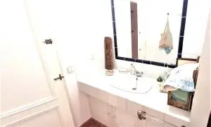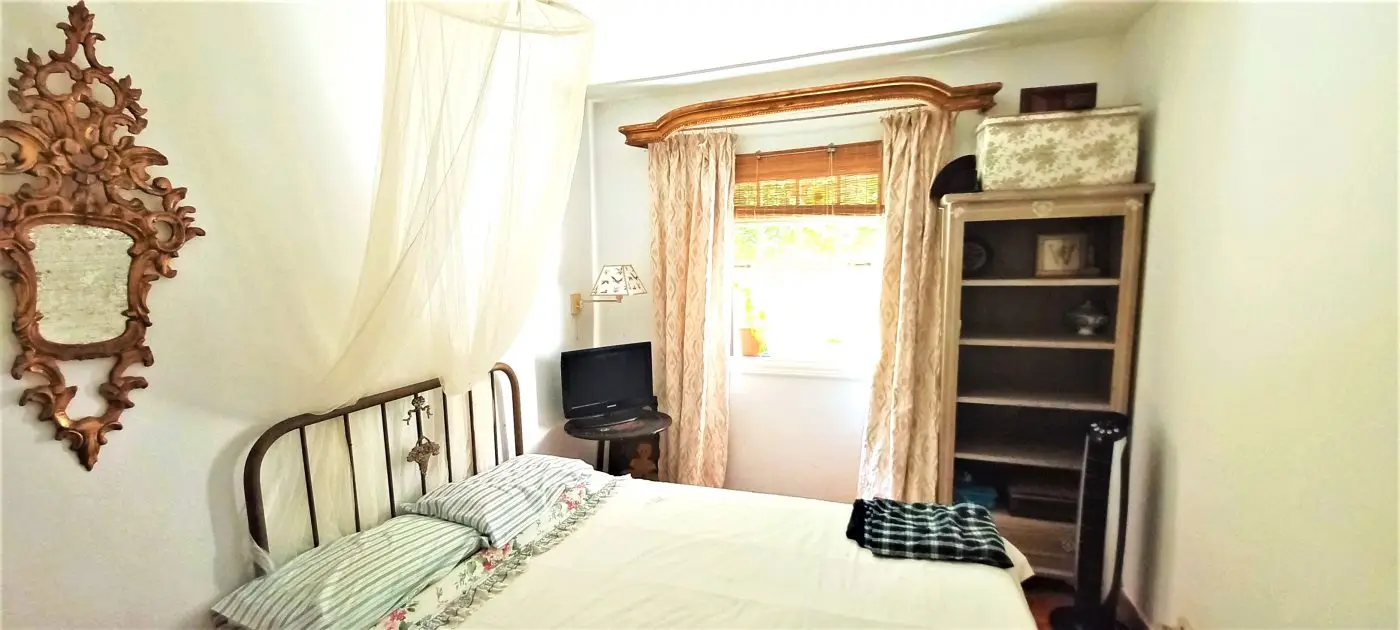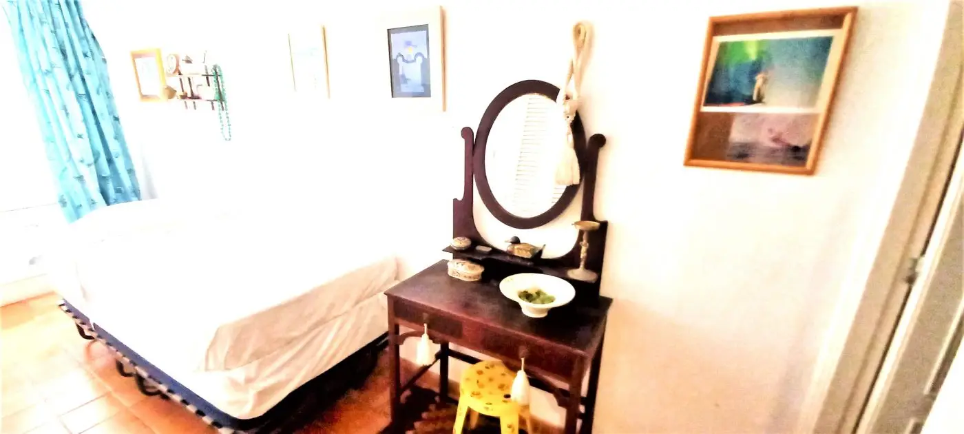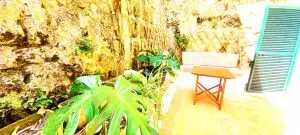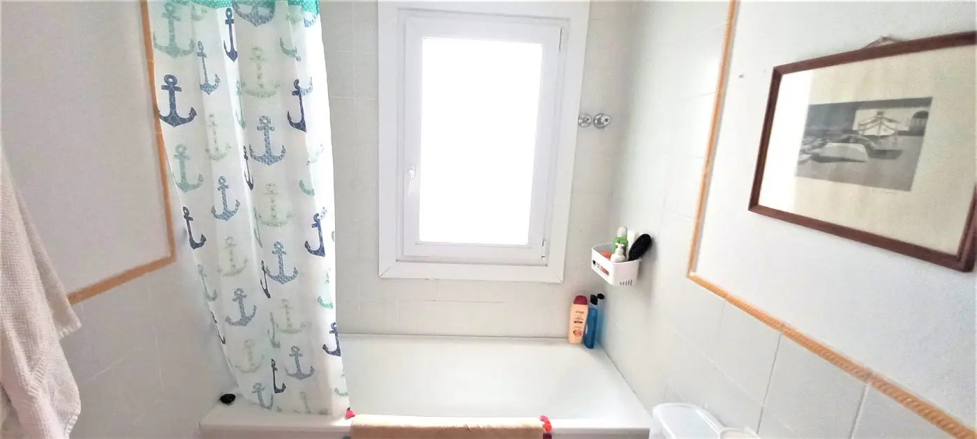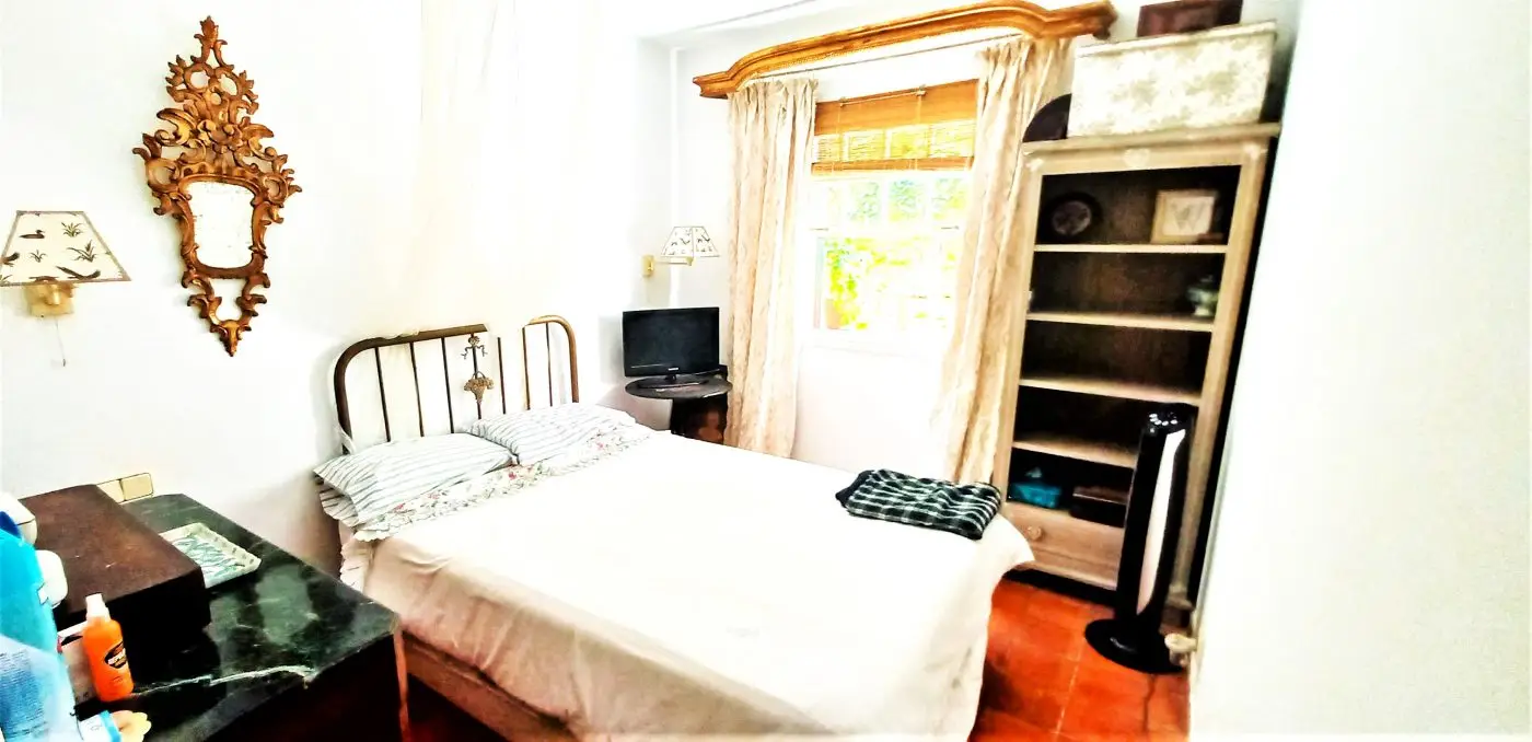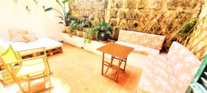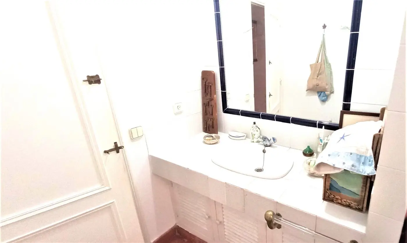 Eine Wendeltreppe führt zur unteren Etage, wo sich zwei Schlafzimmer befinden: ein Doppelzimmer und ein Einzelzimmer, beide mit eigenem Badezimmer. Der Innenhof ist angenehm kühl und eignet sich hervorragend für laue Sommerabende. Die gesamte Rückwand besteht aus Stein, was ihm eine besonders ansprechende Optik verleiht. Zusätzlich steht eine große Garage zur Verfügung, die Sie sich mit den beiden anderen Nachbarn teilen. Diese Garage erweist sich als äußerst praktisch, da das Parken in der Hochsaison oft schwierig ist, oder sie eignet sich perfekt zur Aufbewahrung von nautischen Geräten.