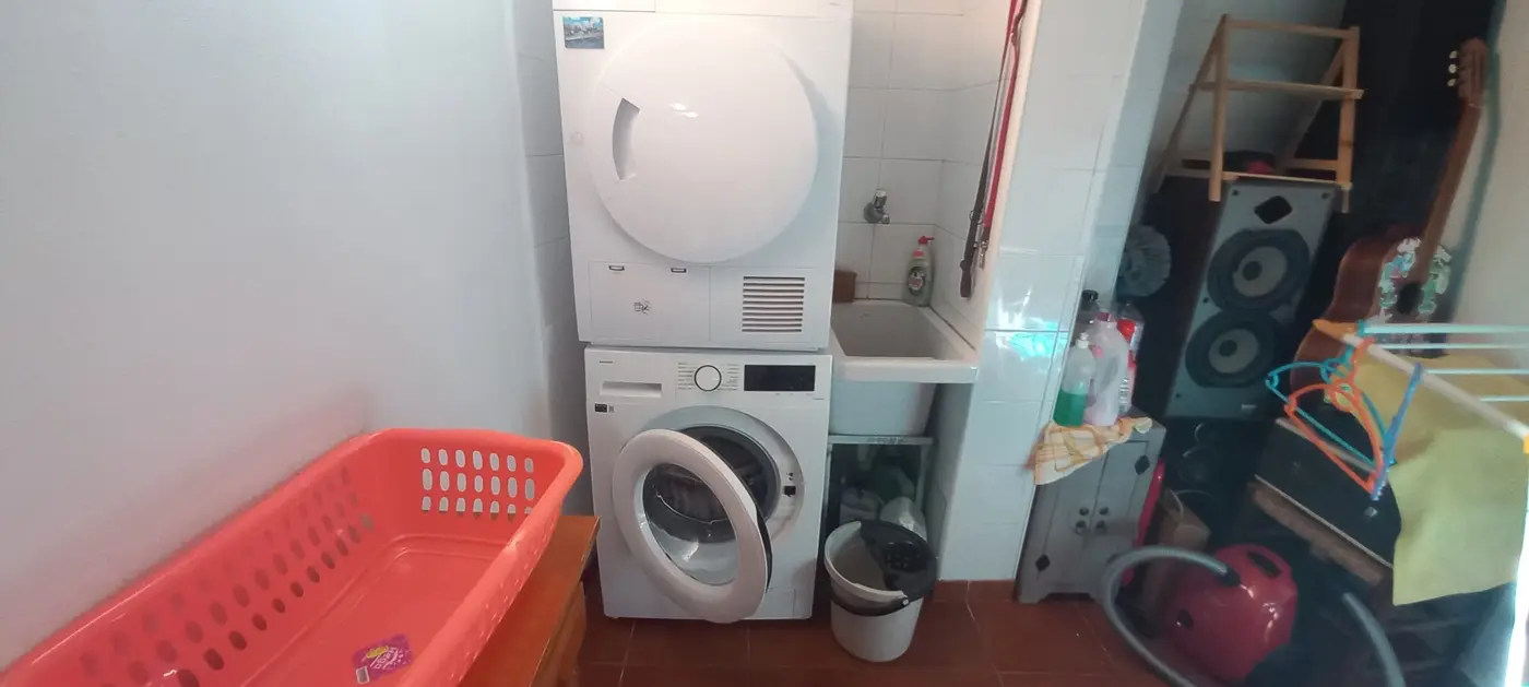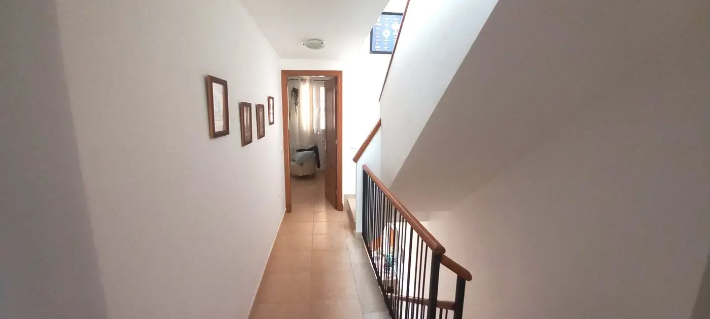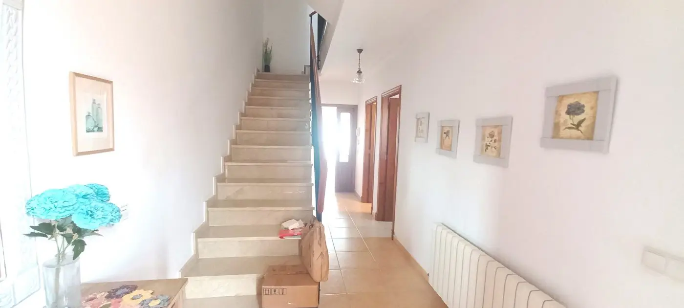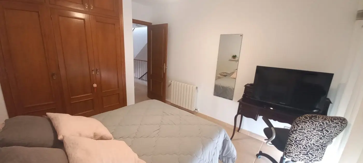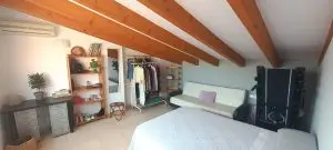 Im ersten Obergeschoss finden Sie drei Schlafzimmer, von denen eines momentan als Büro genutzt wird und Zugang zum hinteren Gartenbereich hat. Ein weiteres Schlafzimmer verfügt über zwei Fenster zur Vorderseite des Hauses, während das dritte Schlafzimmer ein geräumiges eigenes Bad mit Dusche und Handtuchheizung bietet. Alle drei Schlafzimmer sind mit praktischen Einbauschränken versehen. Im zweiten Obergeschoss erwartet Sie ein ansprechender Dachboden, der ein Schlafzimmer mit einer großzügigen Terrasse sowie einen Kleiderschrank beherbergt, in dem sich auch eine Waschmaschine zum Trocknen von Kleidung im Obergeschoss befindet. Die Garage befindet sich unterhalb des Hauses, erreichbar über eine Rampe und öffnet sich durch ein automatisches Tor. Sie bietet ausreichend Platz für zwei Autos sowie zusätzlichen Stauraum. An der Rückseite der Immobilie steht ein Abstellraum zur Verfügung. Zudem gibt es einen direkten Zugang zum Keller oder zur Garage sowohl vom Haus als auch von der Terrasse aus. Die Heizung erfolgt über Gasheizkörper und es ist eine Klimaanlage installiert. Eine Gegensprechanlage ist in beiden Etagen vorhanden. Das Objekt wird teilweise möbliert verkauft.