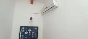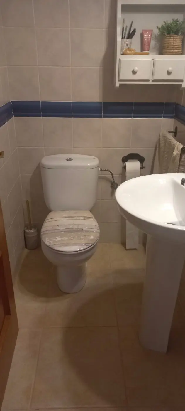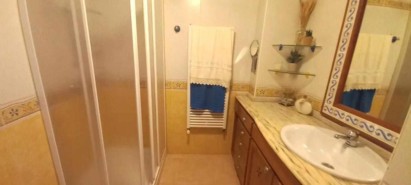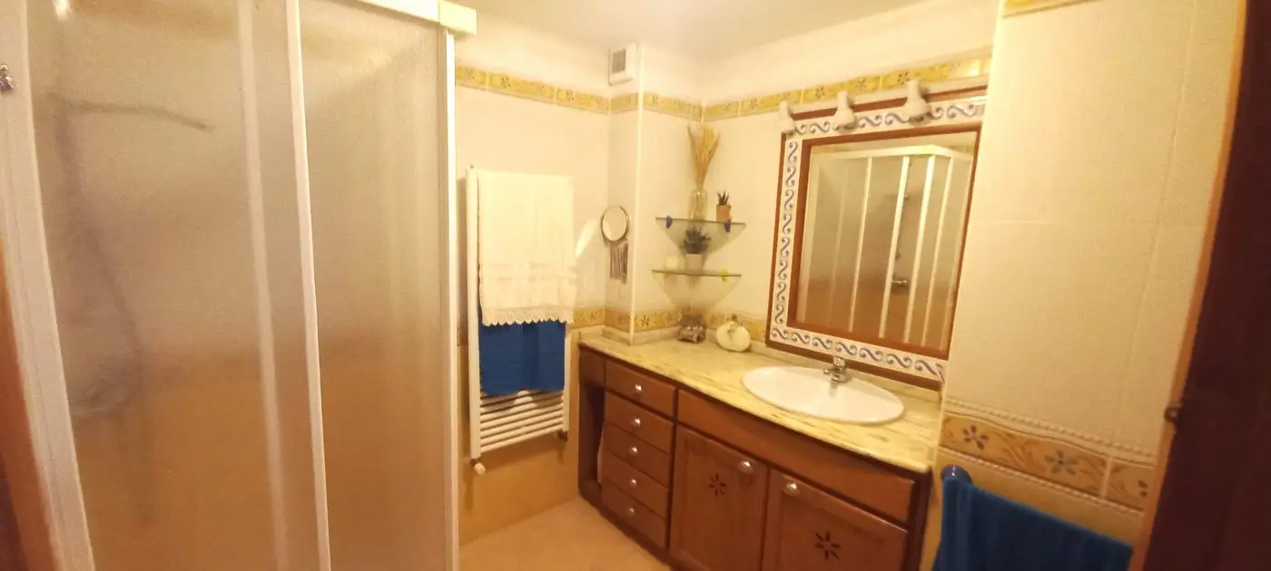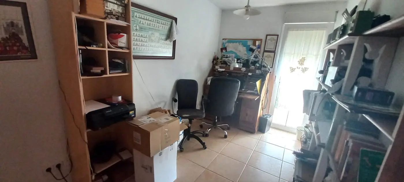 Im ersten Obergeschoss finden Sie drei Schlafzimmer, von denen eines momentan als Büro genutzt wird und Zugang zum hinteren Gartenbereich hat. Ein weiteres Schlafzimmer verfügt über zwei Fenster zur Vorderseite des Hauses, während das dritte Schlafzimmer ein geräumiges eigenes Bad mit Dusche und Handtuchheizung bietet. Alle drei Schlafzimmer sind mit praktischen Einbauschränken versehen. Im zweiten Obergeschoss erwartet Sie ein ansprechender Dachboden, der ein Schlafzimmer mit einer großzügigen Terrasse sowie einen Kleiderschrank beherbergt, in dem sich auch eine Waschmaschine zum Trocknen von Kleidung im Obergeschoss befindet. Die Garage befindet sich unterhalb des Hauses, erreichbar über eine Rampe und öffnet sich durch ein automatisches Tor. Sie bietet ausreichend Platz für zwei Autos sowie zusätzlichen Stauraum. An der Rückseite der Immobilie steht ein Abstellraum zur Verfügung. Zudem gibt es einen direkten Zugang zum Keller oder zur Garage sowohl vom Haus als auch von der Terrasse aus. Die Heizung erfolgt über Gasheizkörper und es ist eine Klimaanlage installiert. Eine Gegensprechanlage ist in beiden Etagen vorhanden. Das Objekt wird teilweise möbliert verkauft.