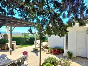 Praktische Extras wie eine Waschküche, ein Abstellraum sowie ein kleiner Gemüsegarten mit frischen Tomaten sorgen dafür, dass es Ihnen an nichts fehlt. Die große Terrasse mit schattenspendender Pergola lädt dazu ein, die unvergleichliche Aussicht auf das glitzernde Meer zu genießen – ein Ort, an dem sich unvergessliche Momente mit Freunden und Familie erleben lassen.